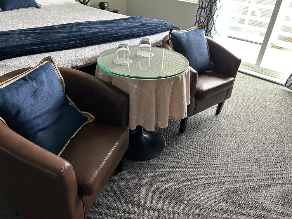Our partial ocean view room King rooms are up two full flights of stairs. These rooms includes one King-size bed for a max of two people, Eco-Friendly Fireplace, Jacuzzi tub, Separate Shower, Private Balcony with Partial Ocean View over the rooftops, television, Alarm Clock, Direct Dial Phone, Hair Dryer, Ironing Board and Iron, coffee maker, microwave, mini fridge,and Writing Desk. This rooms allows for up to TWO people.
